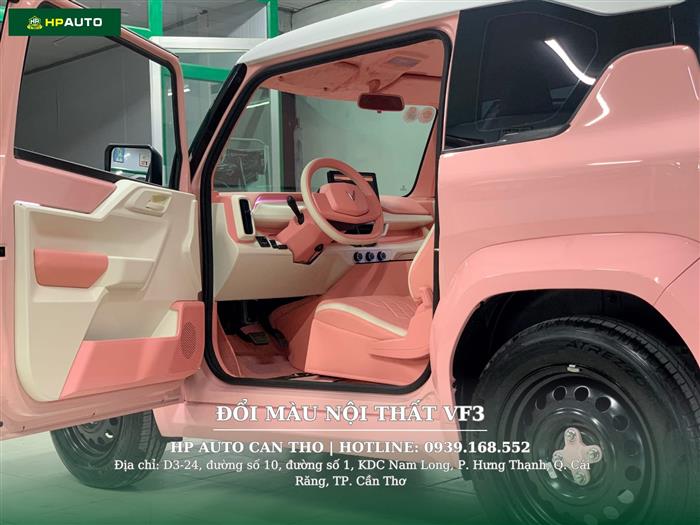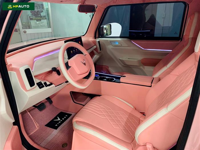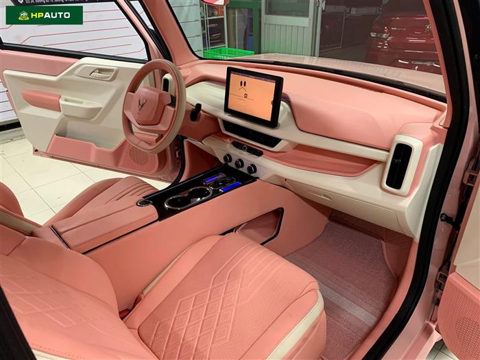 Bọc ghế da VF3 hoạ tiết trắng hồng