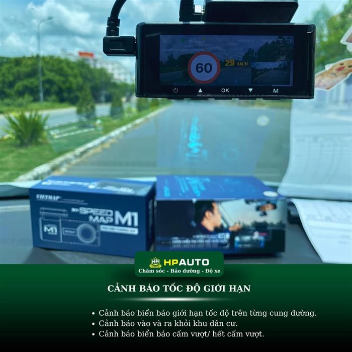 Camera hành trình SpeedMap M1 - dòng camera VIETMAP đầu tiên trang bị tính năng luôn hiển thị tốc độ giới hạn khi lái xe đồng thời cảnh báo nhắc nhở khi vượt tốc độ giới hạn. Ngoài ra trong video ghi hình tích hợp chi tiết thông tin tuyến đường di chuyển bao gồm Tên Đường, Quận, Thành Phố và tốc độ giới hạn.