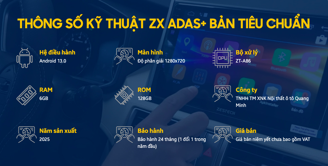 Màn hình ZX ADAS sở hữu công nghệ hiển thị tiên tiến chuẩn HD, đưa trải nghiệm thị giác của người dùng lên tầm cao mới, vượt xa các màn hình thông thường.