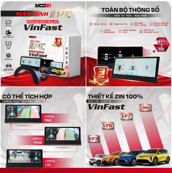 Tốc độ, hộp số, trạng thái % pin, ODO, trạng thái đèn và cửa, nhớ điều hoà...