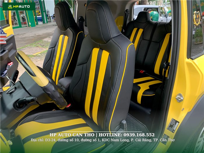 Bọc ghế da VF3 hoạ tiết vàng đen
