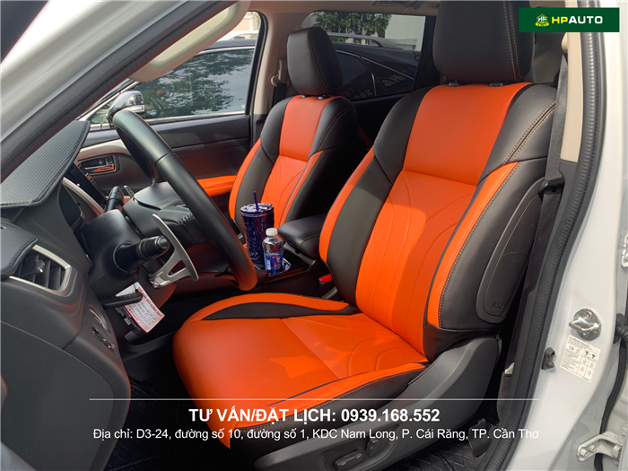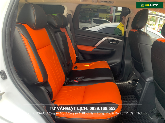 Bọc ghế da Pajero hoạ tiết cam đen