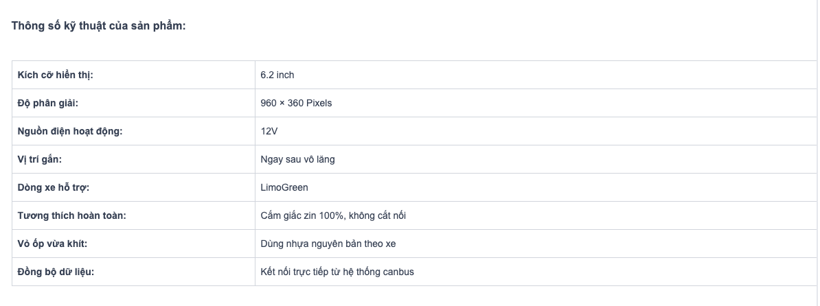 Hiển thị thông tin xe: